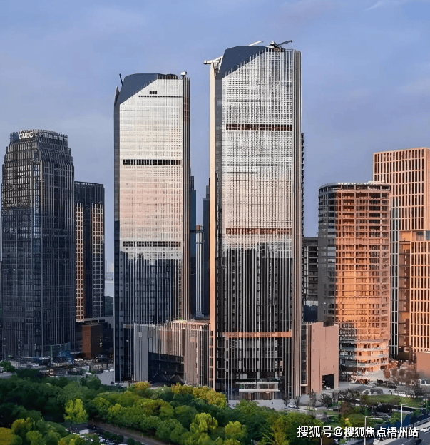 建筑本体采用双塔设计,总建筑面积约12.6万平方米。两栋塔楼分别以28层和32层的高度错落分布,外立面采用LOW-E玻璃幕墙与石材结合的设计,既保证了自然采光需求,又通过石材的厚重感平衡了玻璃幕墙的现代感。这种设计语言在钱江新城众多摩天楼中形成了独特的视觉标识——既不过分张扬,又具备专业商务场所应有的庄重感。