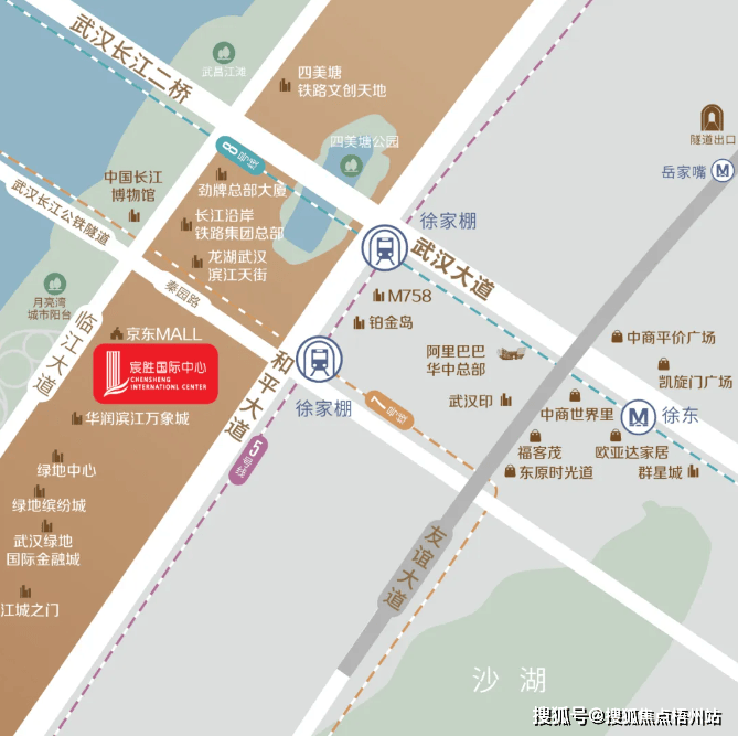 项目坐落于武昌滨江商务区核心段,与长江二桥直线距离仅800米,毗邻在建的武汉地铁7号线与8号线换乘站徐家棚站。根据武汉国土资源局2023年规划,该区域未来三年将新增12个商业综合体及3条跨江通道,形成"一江两桥三轨"的立体交通网络。