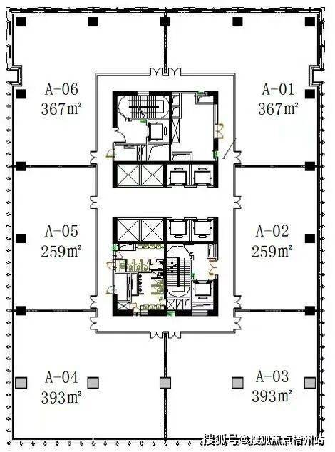 • A栋标准层:约1640~2077㎡
